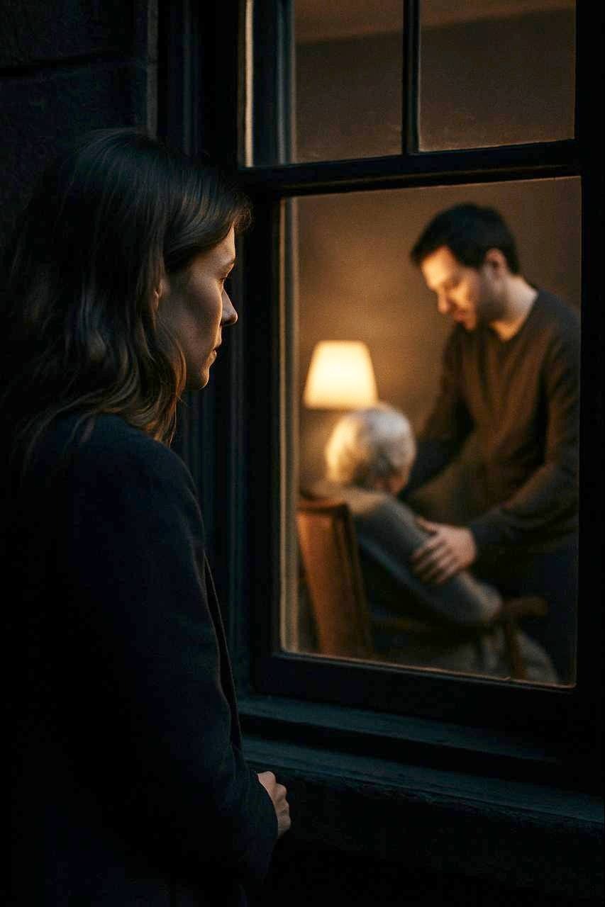 Pozerala, ako jej manžel vošiel do bytu. V okne sa rozsvietilo svetlo. Posadil sa vedľa matky, vzal ju za ruku a niečo jej ticho hovoril. Starena sa usmievala cez slzy. Vyberal potraviny z tašky, prikryl ju dekou, upravil vankúš. Marina stála v tme, ohromená.