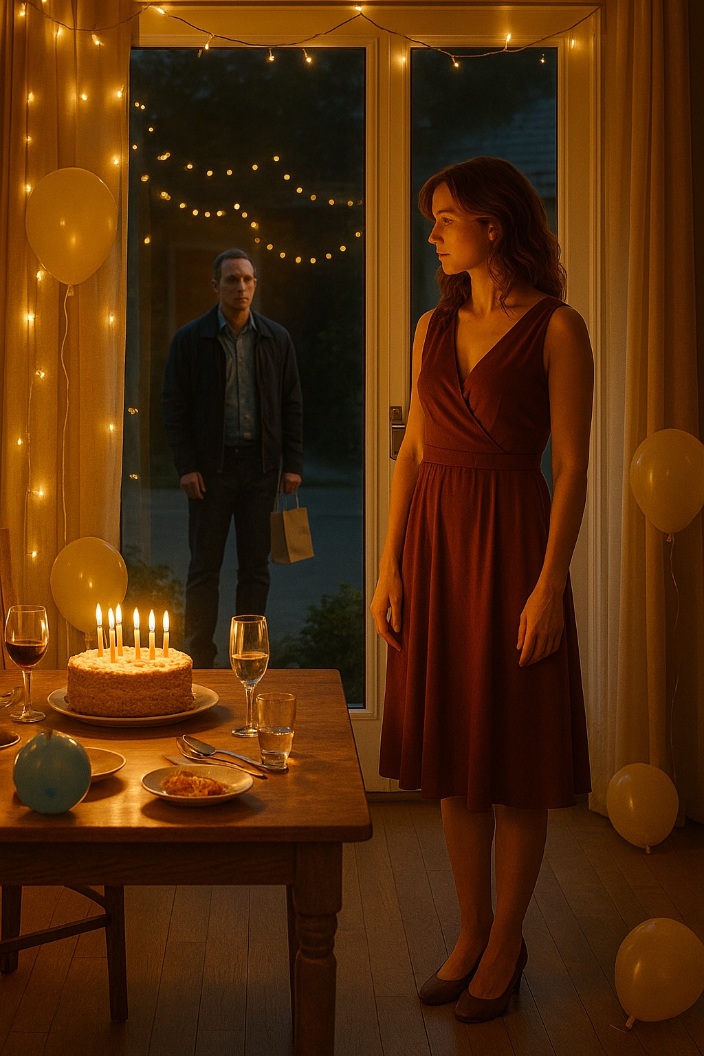 Objednala jeho obľúbenú tortu — s jahodovým krémom a orechmi. Pozvala priateľov, vyzdobila izbu svetielkami, zapálila sviečky. Dokonca kúpila nový oblek — nie pre seba, preňho.