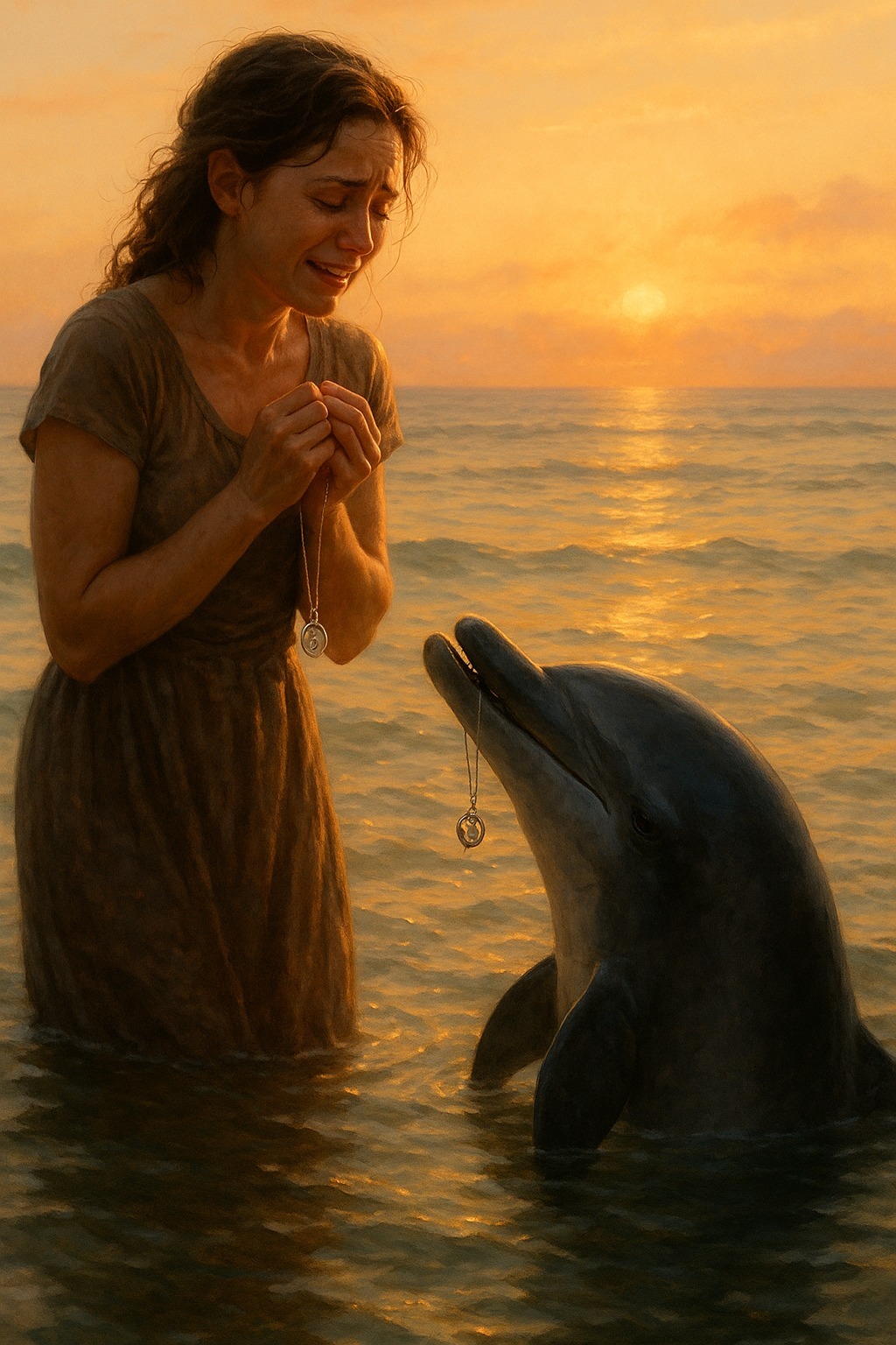Delfín neodplával. Plával vedľa, akoby čakal. Potom ticho priplával bližšie, dotkol sa jej dlane svojím čelom a zmizol pod vlnou.