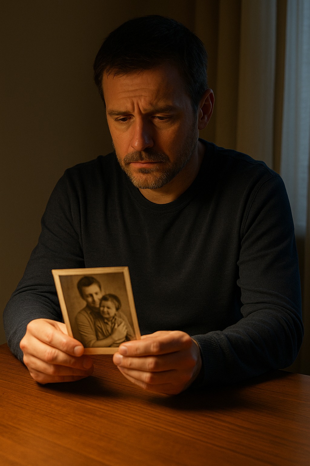 Vo vnútri bola stará fotografia — on sám, ako drží v náručí chlapca.