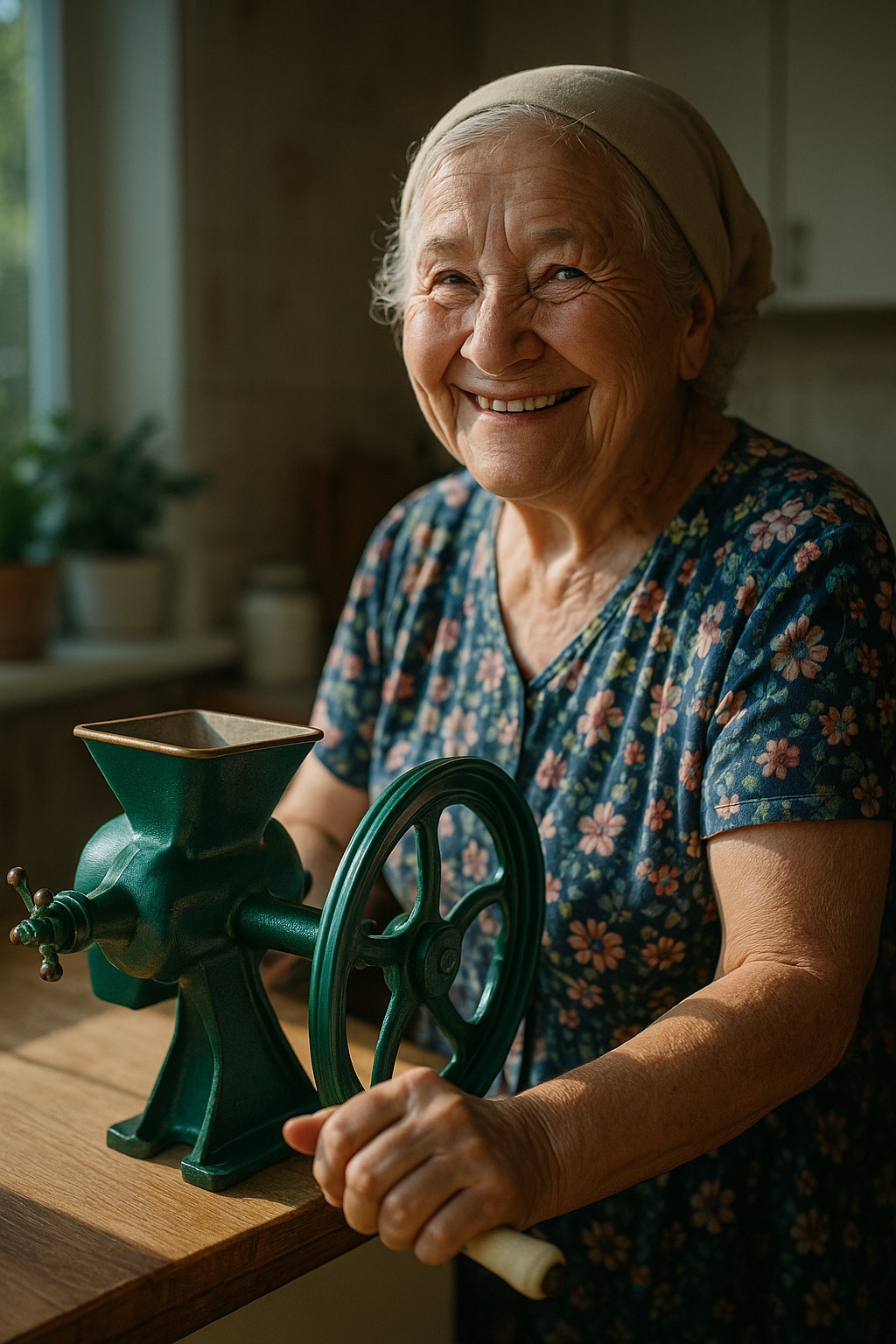 Na prvý pohľad — len kus starého železa. Ale stačilo, aby babička otočila rukoväťou — a kuchyňa ožila zvukom práce a vôňou čerstvo pomletého obilia…