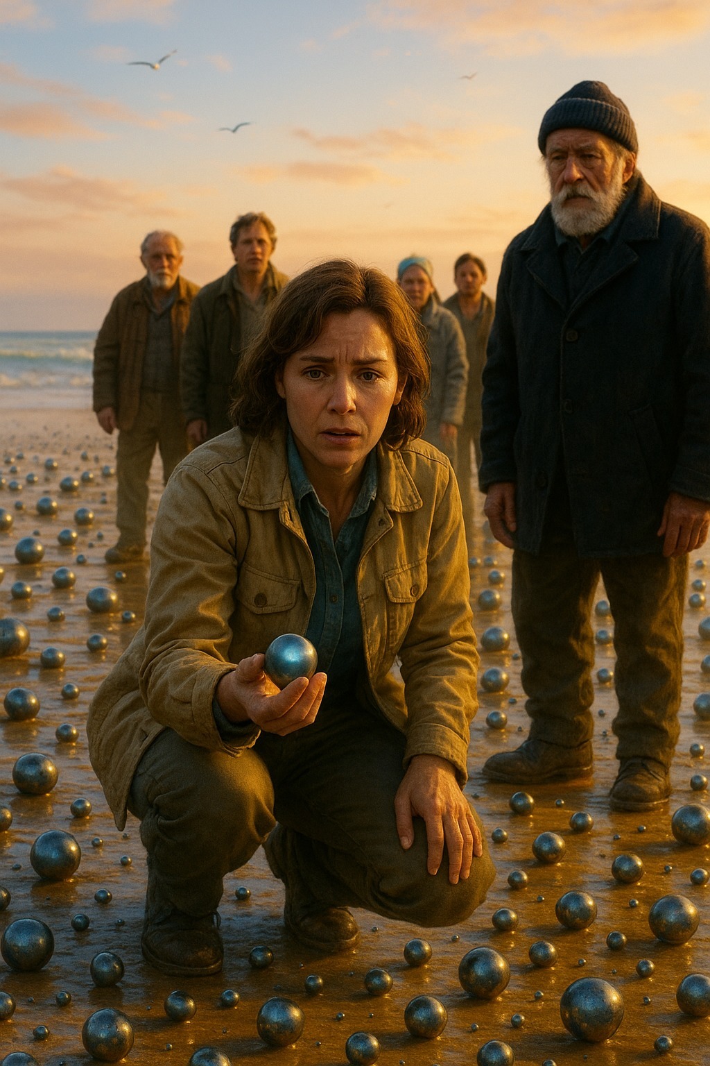 Ľudia zišli dolu na odhalené morské dno. Všade ležali tisíce malých kovových predmetov, niektoré žiarili, iné pulzovali. Elizabeth zdvihla jeden: „Toto nie je prírodné. Je to vytvorené.“