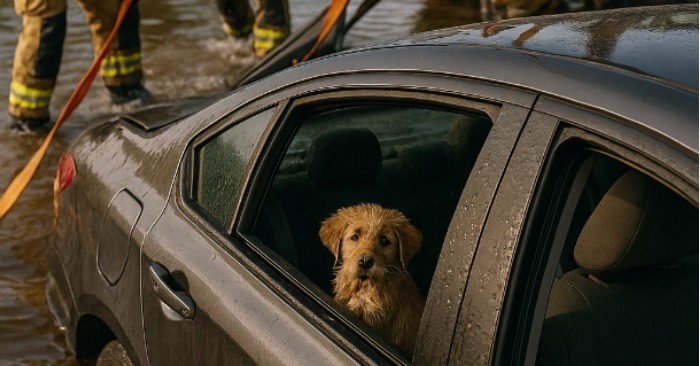 Na zadnom sedadle, trasúc sa od zimy, sedelo šteniatko — mokré, ale živé.
