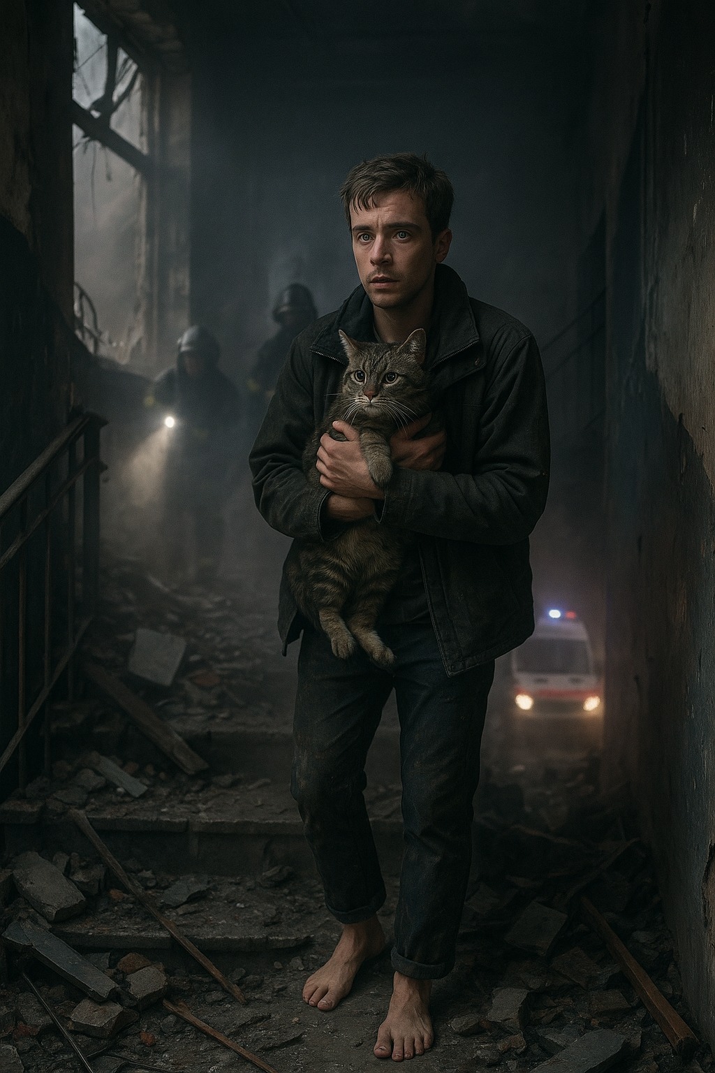 Susedia v panike, vybiehajú — niekto v župane, niekto bosý. Jeden kričí, druhý volá záchranku. Hasiči dorazili o päť minút. Povedali, že asi vybuchol plyn v byte na prízemí. Žena, čo tam bývala, sa stihla zachrániť — cítila plyn, ale nestihla varovať ostatných.