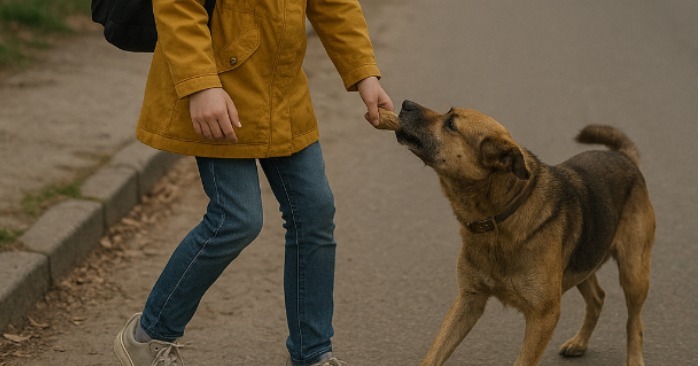 Pri bráne susedného domu si všimla psa. Bol špinavý, s ošúchaným obojkom, zjavne bezdomovec. Zviera sa pozeralo ostražito, ale neštekalo. Dievča prešlo okolo, ale pes sa zrazu zdvihol a išiel za ňou. Najprv pomaly, potom rýchlejšie. Sofia sa zľakla, zrýchlila krok, ale pes bežal za ňou a štekal.