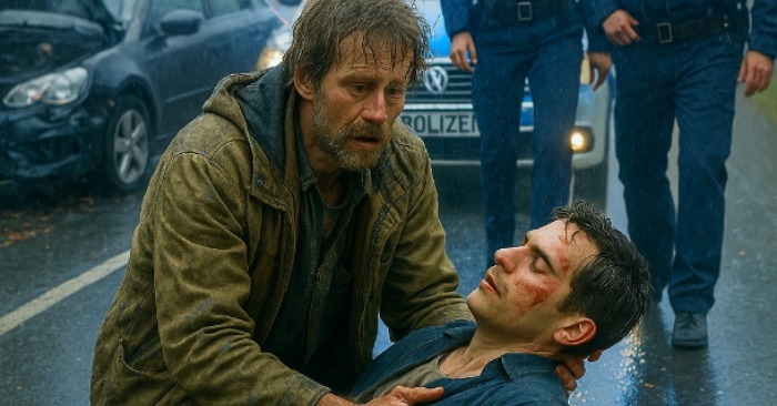 Prvý k miestu nehody pribehol muž v ošúchanom oblečení. Volal sa Luka Weiss. Mal rozcuchané vlasy, roztrhanú bundu, džínsy pokryté olejom a špinou – vyzeral skôr ako bezdomovec než ako záchranár. Ale práve on skočil k autu, strhol z neho bezpečnostný pás a snažil sa dostať k vodičovi.