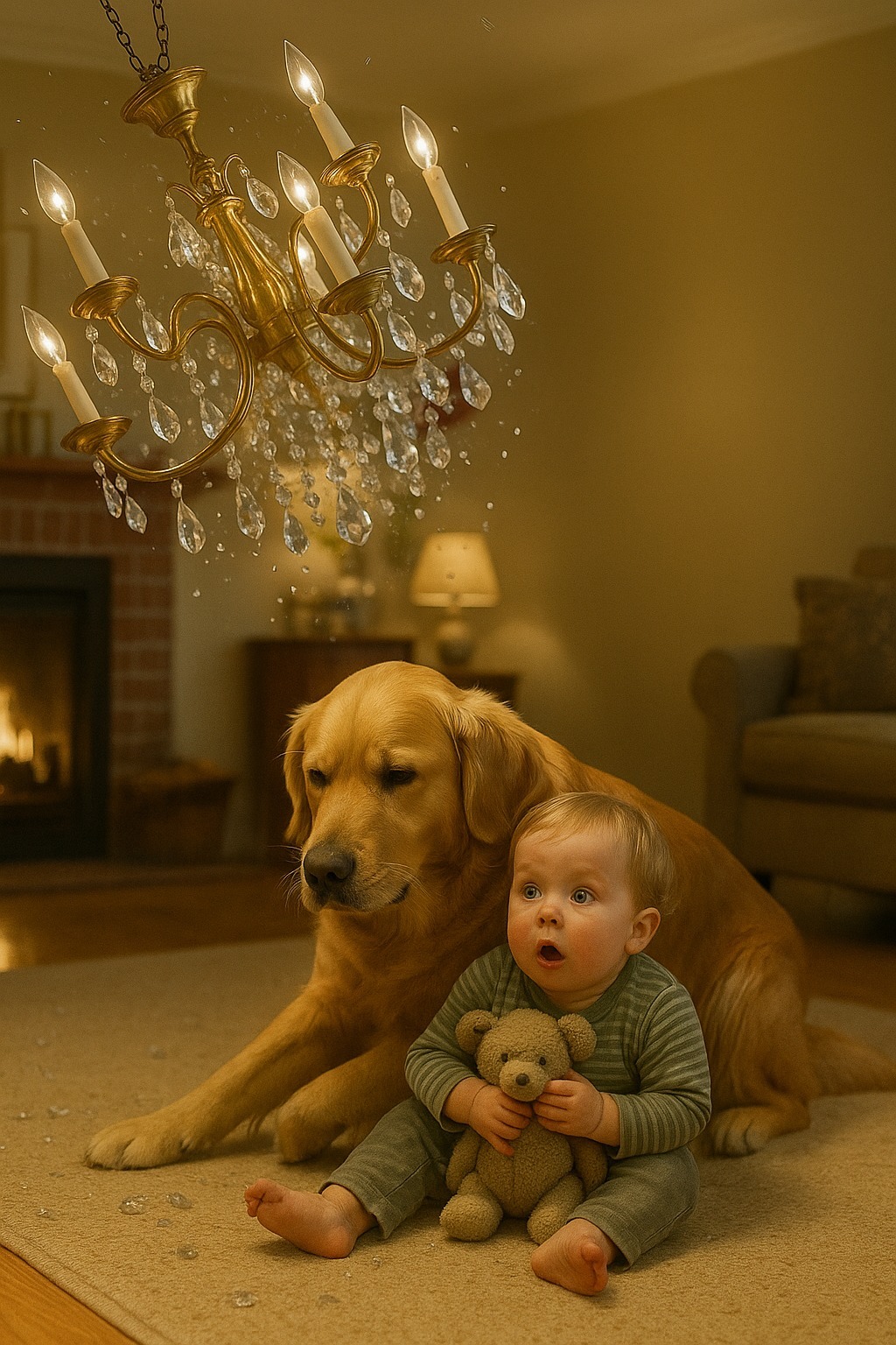 Televízor potichu hral a ich otec Michael kontroloval správy na telefóne. Nikto si nevšimol obrovský krištáľový luster, ktorý sa mierne hojdal nad obývačkou. Možno kvôli prepätiu alebo možno miernemu prievanu z okna sa uchytenie starého lustra zrazu zlomilo.