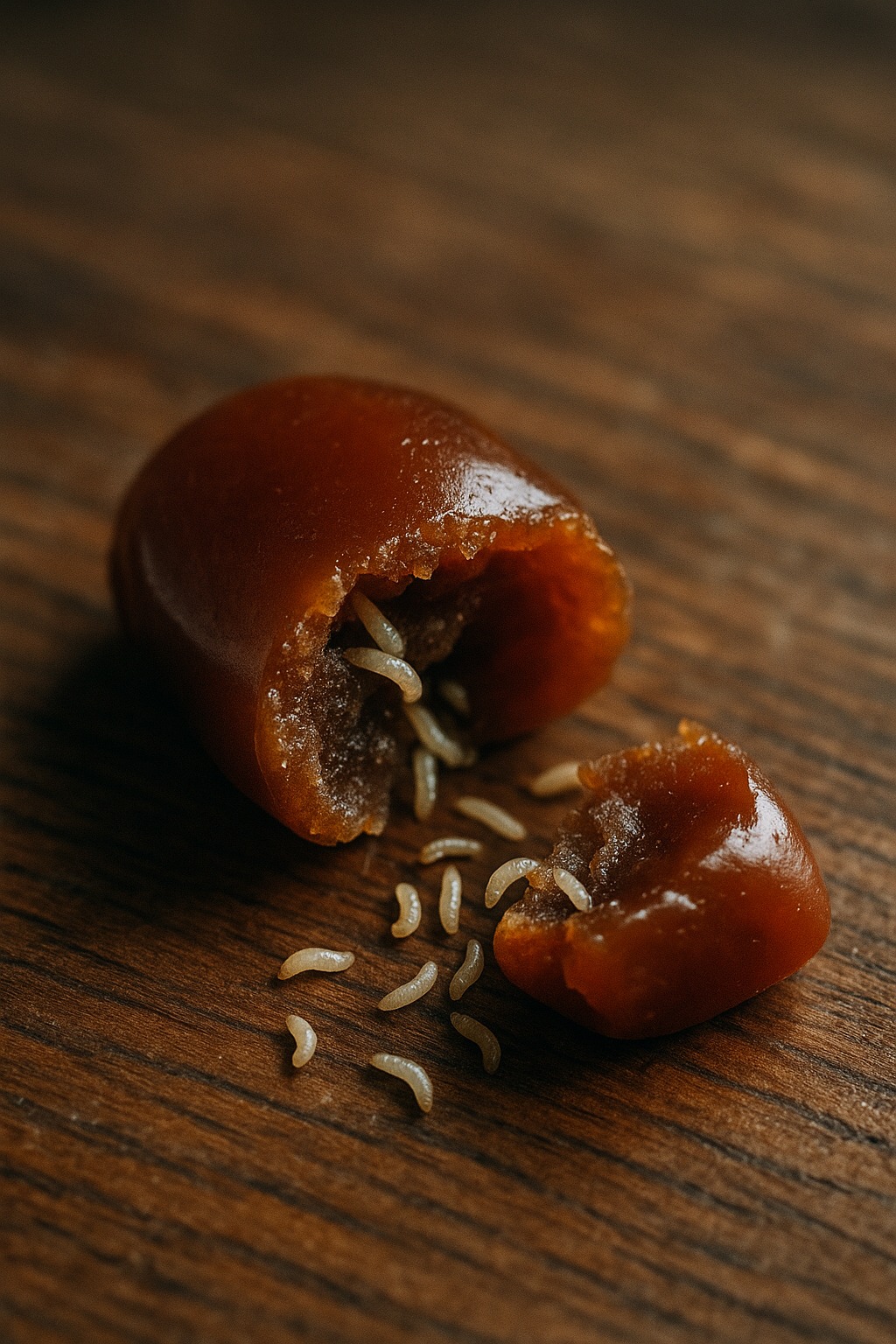 Najprv som si myslela, že je to hra svetla. Ale nie. Tenké biele nite – drobné, živé, pohybujúce sa červíky – sa prepletali cez sladkú hmotu. Premohol ma mráz. Zovrela sa mi hruď. Cítila som, ako sa stiahne vzduch. Cukríky dopadli na stôl a ja som všetko videla jasnejšie: doslova sa tlačili von, akoby sa snažili uniknúť.