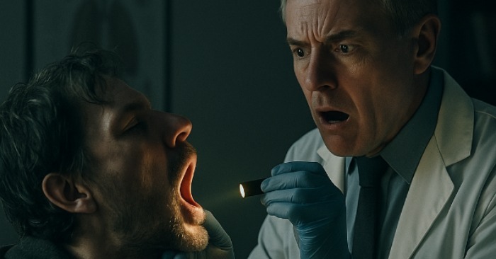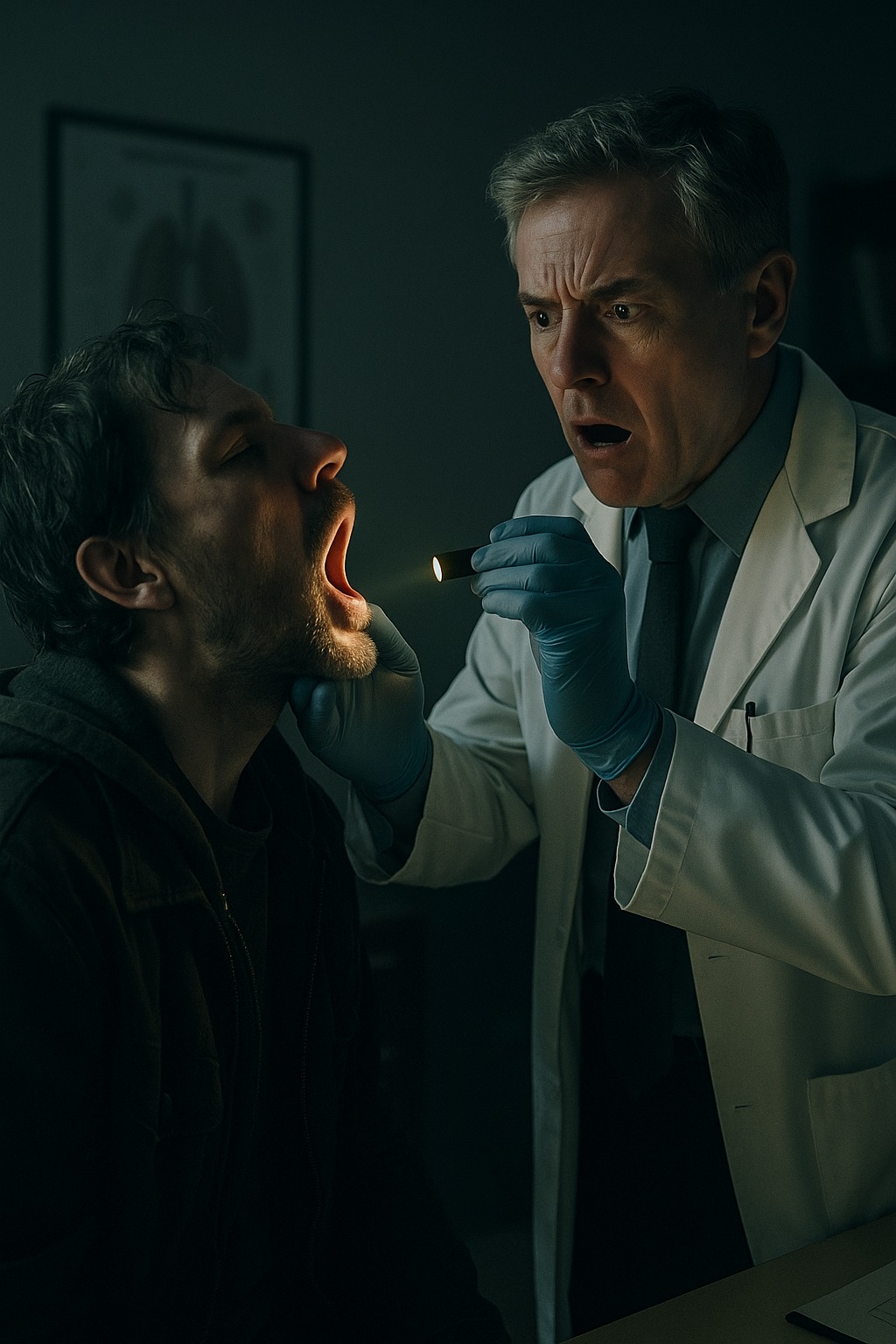 Pacient poslušne sklonil hlavu. Svetlo baterky mu prešlo po vnútrajšku úst. A v tej chvíli si lekár všimol zvláštny tieň – akoby sa niekde medzi jeho mandľami pohla tenká čiara. Zamračil sa, priblížil sa a prižmúril oči.