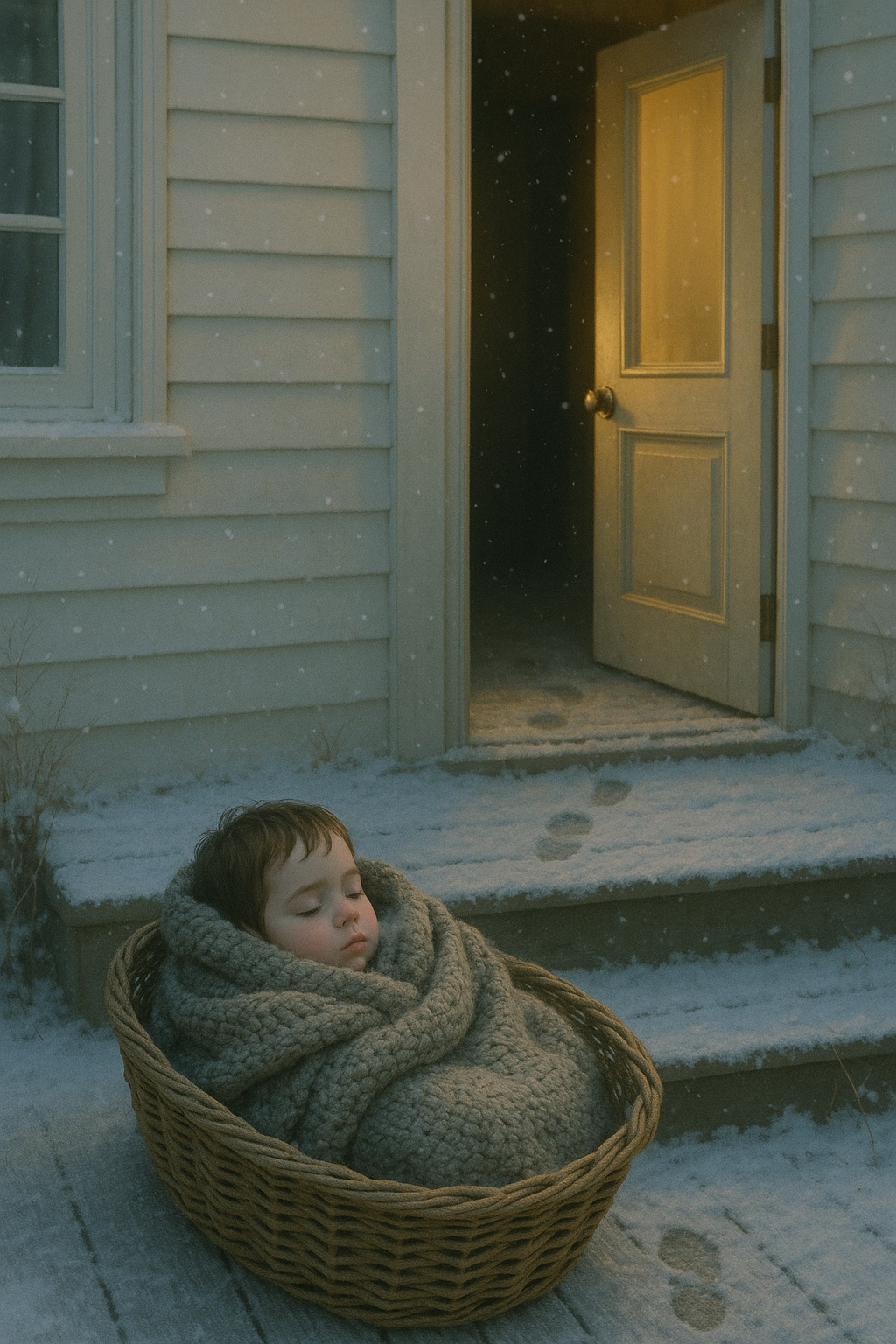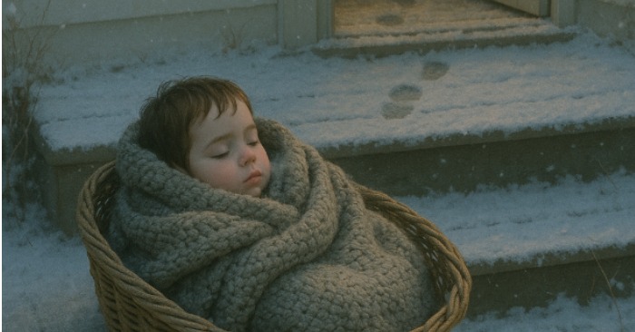 Na verande, hneď pri vchodových dverách, ležal zväzok. Malý, úhľadný, nehybný. Až keď sa priblížili, bolo jasné: vo vnútri bolo dieťa. Veľmi malé, zabalené v deke tak starostlivo, akoby sa rodič bál najmenšieho závanu studeného vetra. Bolo opustené, akoby ho niekto miloval – ale nemohol si ho nechať.