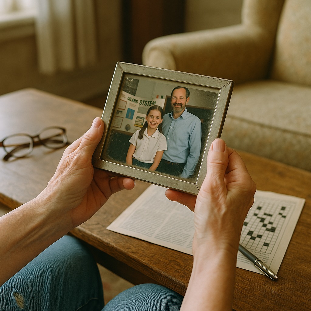 Bola to jej fotka ako dvanásťročnej, ako stojí pred školským vedeckým projektom, vlasy mala zapletené do dvoch nerovných vrkočov a široko sa usmievala. Vedľa nej, mladší a rovnejší, sa jej otec usmieval na fotoaparát, ruka mu nešikovne visela za jej ramenom, akoby sa bál dotknúť.