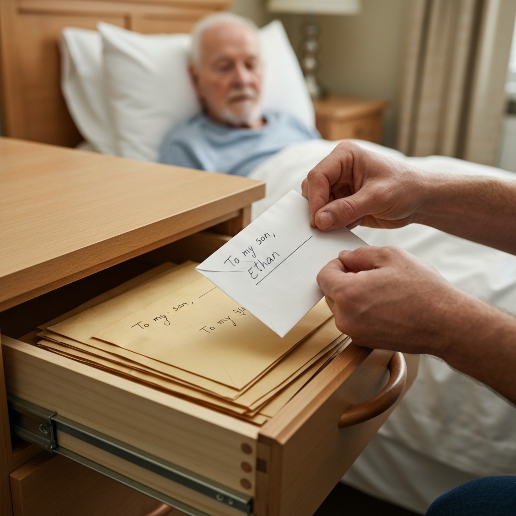 Ruka sa mi triasla, keď som otváral zásuvku. Vnútri boli desiatky obálok, niektoré zažltnuté, niektoré nové, všetky adresované rovnako: „Môjmu synovi Ethanovi,“ za ktorými nasledovalo prázdne miesto tam, kde mala byť adresa.