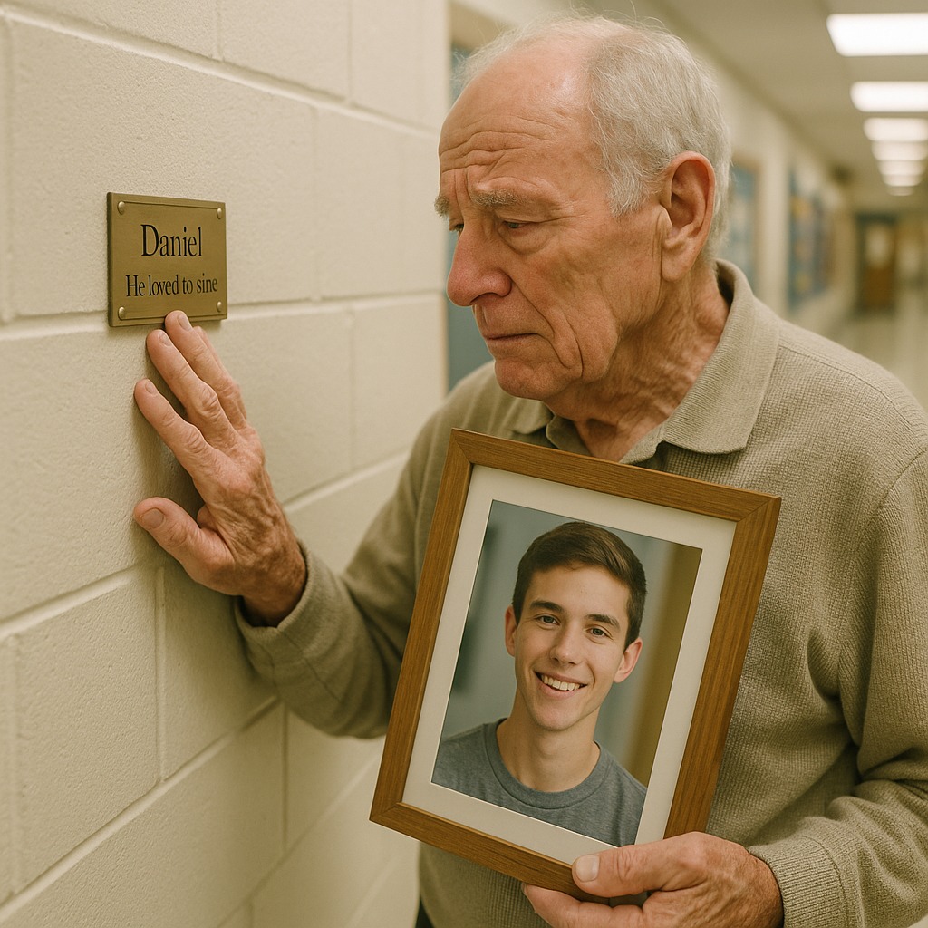 „Vážení rodičia,“ povedala, jej hlas sa triasol z reproduktorov. „Dnes začneme koncert inak. Máme hosťa, ktorý prišiel vypočuť si niekoho, kto už nie je medzi nami. Našu prvú pieseň by sme chceli venovať Danielovi, ktorý kedysi študoval v tejto škole, a jeho starému otcovi, ktorý na neho nikdy neprestal čakať.“