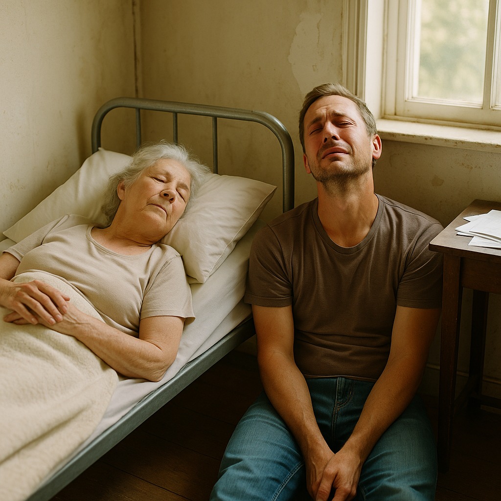 Vonku bolo slnečné svetlo príliš jasné. Svet išiel ďalej – autá trúbili, deti sa smiali pri autobusovej zastávke, pes štekal z prechádzajúceho nákladného auta. Nikto tam vonku nevedel, že v malom dome na okraji mesta bude čoskoro ležať stará žena v novej posteli, pretože jej syn sa rozhodol niesť bremeno, ktoré ho pomaly drvilo.