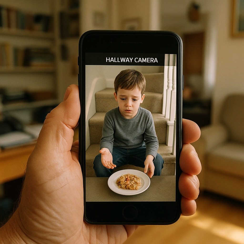 Zábery sa načítali: časová pečiatka, tichá chodba, potom malé pohyby. O 19:03 sa dvere domu 3B otvorili. Daniel opatrne vyšiel von, balansujúc na tanieri s dvoma krajcami toastu. Položil ho na schody, narovnal ho, akoby na tom záležalo, zašepkal niečo nepočuteľné a vrátil sa dnu.
