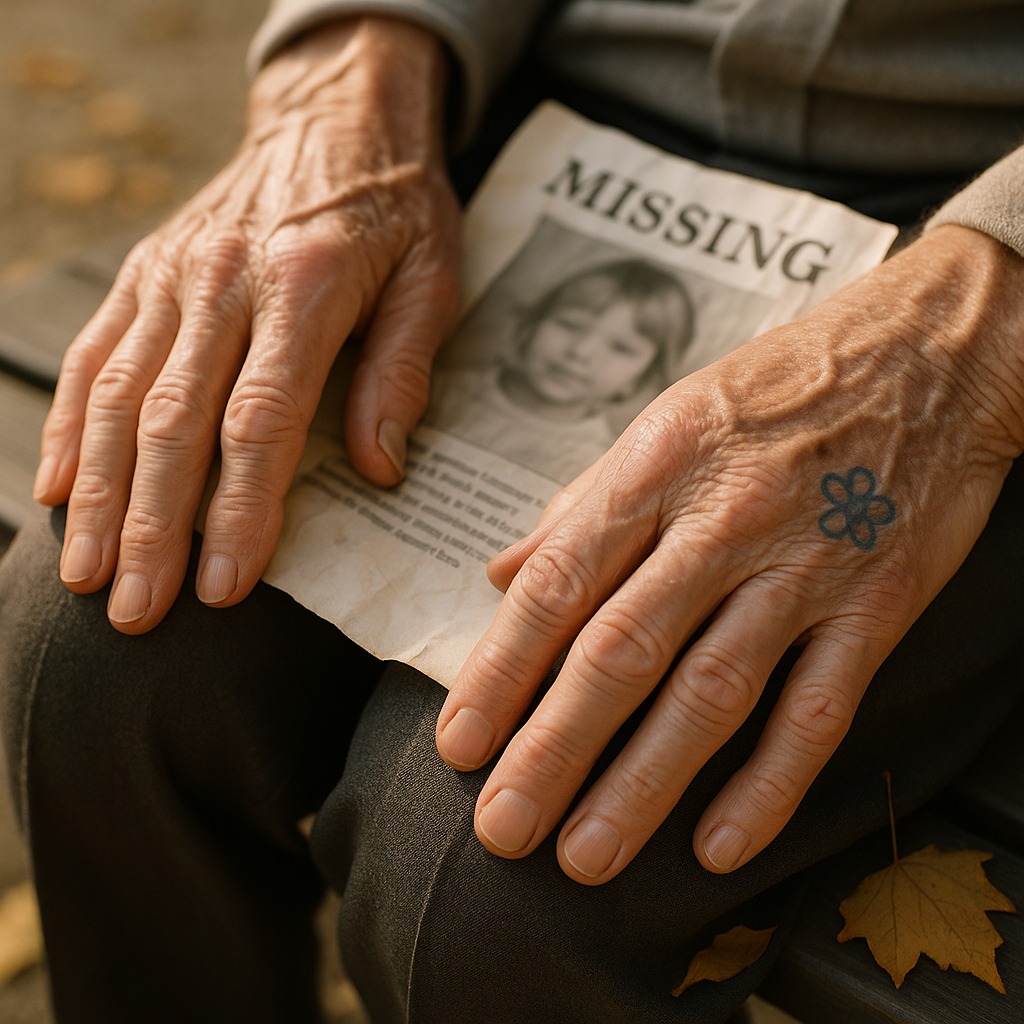 Vsem, ki so ga vprašali, je povedal, da gre samo na svež zrak. Toda resnica je bila skrit v njegovem notranjem žepu, v plastičnem ovitku, obrabljenem na robovih – plakat pogrešanega otroka, porumenel in stokrat prepognjen.