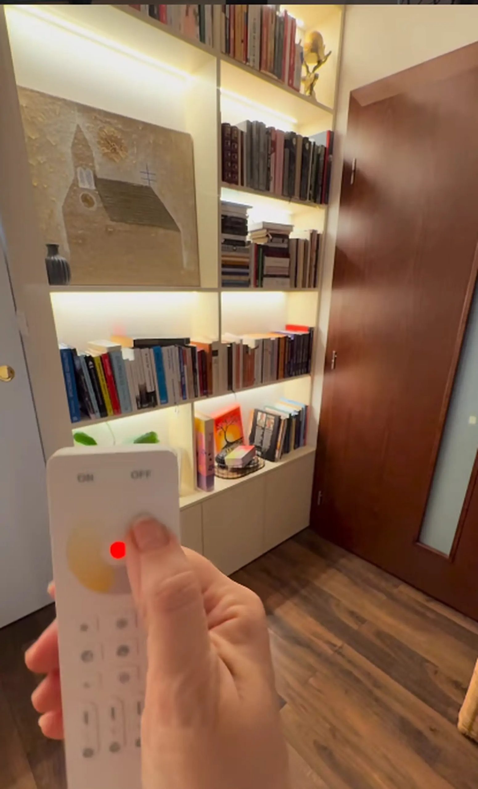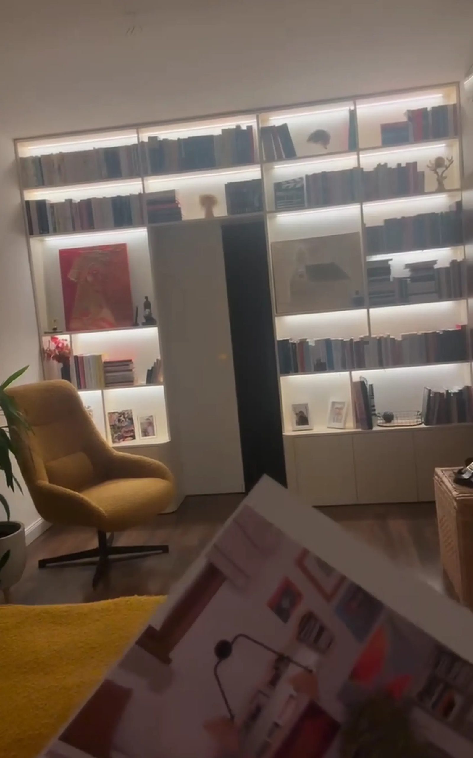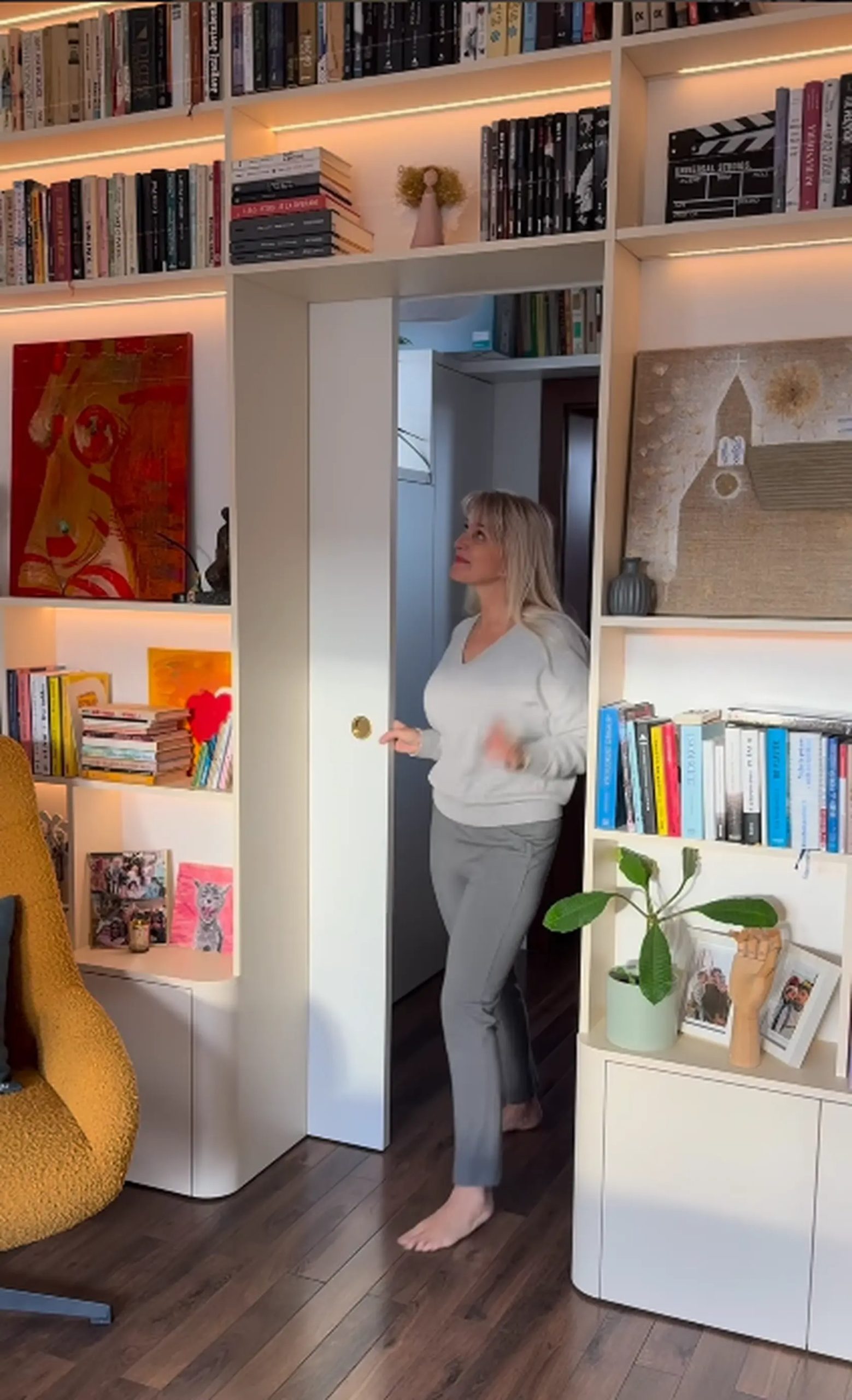 Praktické vychytávky, ako textilné rolety s možnosťou regulácie svetla a zabudované podsvietenie knižnice s diaľkovým ovládaním, robia spálňu nielen vizuálne príjemnou, ale aj funkčnou. Knižnica situovaná pri vstupe obsahuje knihy, ktoré sú ľahko dostupné a podporujú relaxáciu a oddych, čo nie je v slovenských spálňach bežné, no efekt je ohromujúci.
