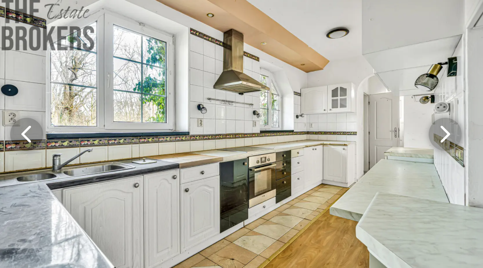 Interiér je z veľkej časti vyprataný a nový majiteľ v ňom nájde najmä priestrannú kuchyňu a kúpeľne v pôvodnom stave. Podľa realitnej kancelárie je to príležitosť pre budúceho majiteľa prispôsobiť si dom podľa vlastných predstáv.