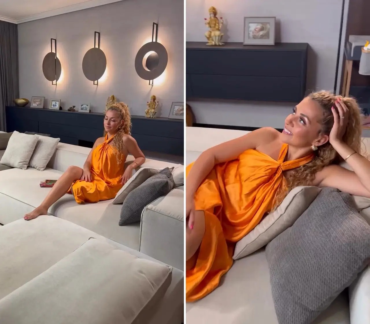 Jej obývačka pôsobí na prvý pohľad minimalisticky, no skrýva v sebe množstvo detailov, ktoré z nej robia útulné miesto plné energie. Dominantou je svetlá, pohodlná sedačka v jemných neutrálnych tónoch, ktorá priam láka sadnúť si a vypnúť.