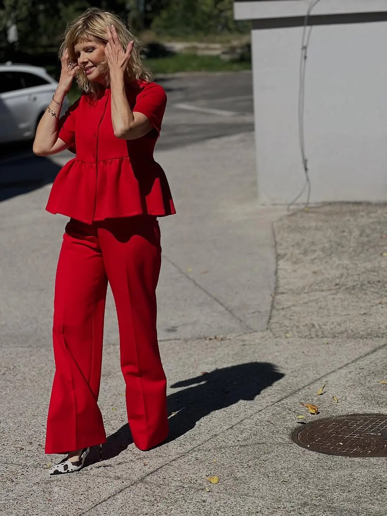 Aj keď má jej šatník pestrú paletu kúskov, je zrejmé, že červená u nej jednoznačne dominuje. Nevyhýba sa jej pri spoločenských udalostiach, nosí ju do práce a pokojne si ju oblečie aj doma. Červená je pre ňu viac než len módna voľba – je to nálada, energia a spôsob, ako sa cítiť lepšie aj počas obyčajného dňa.