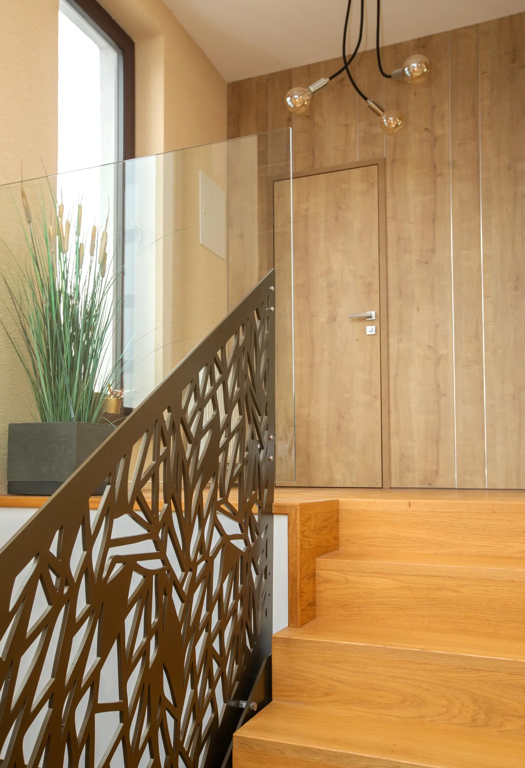 Do domu pozval aj magazín, aby ukázal komfort, v akom rodina žije. Horné poschodie doplnil o presklenú pracovňu, ktorú si vysníval – so stropom zo skla a výhľadom na okolie. Celý interiér nesie mužský rukopis, ktorý Ján navrhoval ešte predtým, než sa presťahoval s rodinou. Oceľové zábradlie na schodisku je jeho vlastným návrhom a dodnes je na tento detail právom hrdý. Dolné poschodie tvoria prepojená kuchyňa s obývačkou, horné poschodie patrí súkromným spálňam.