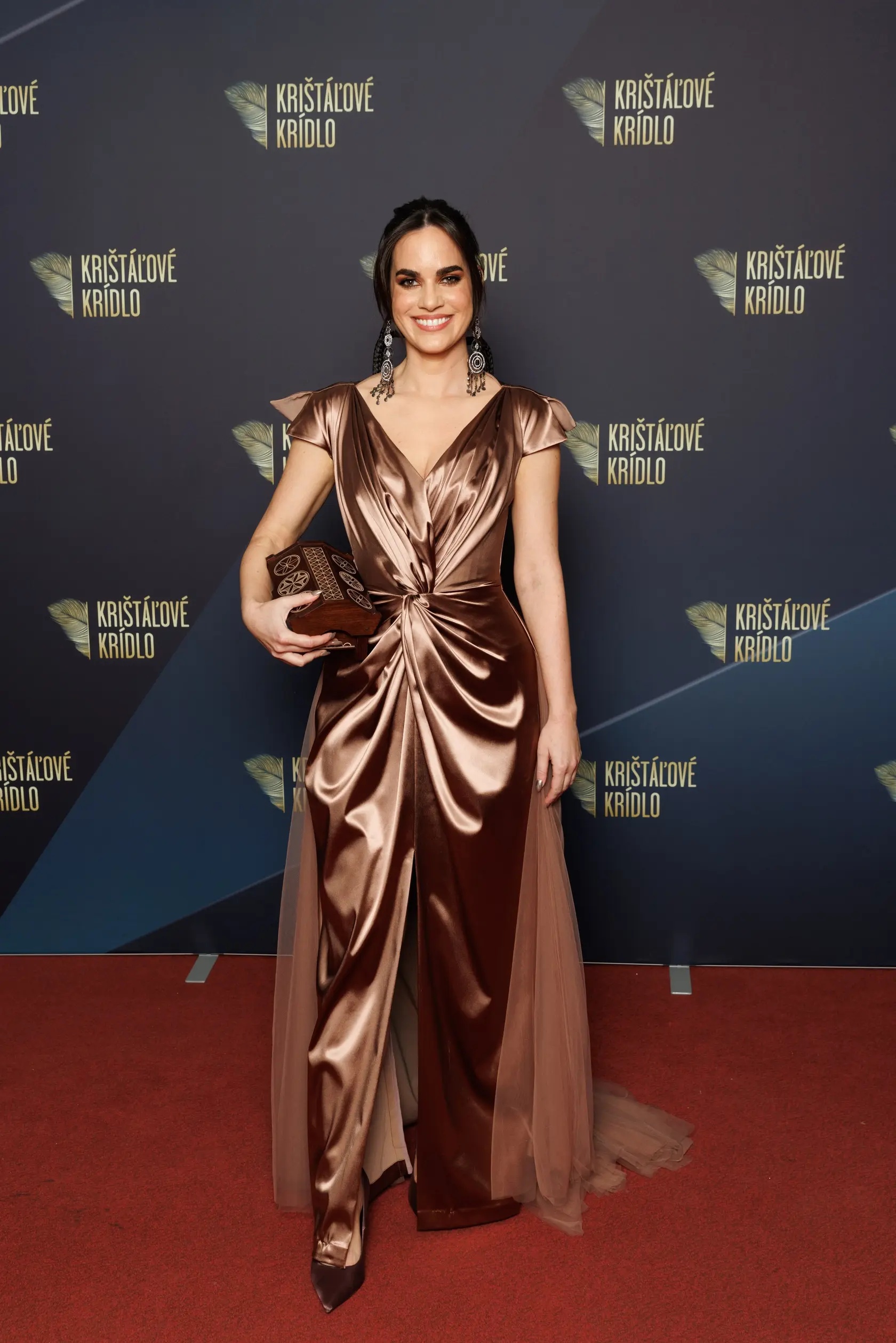 Katarína Srkala zaujala hneď na prvý pohľad. Podľa Hanečku niesla na sebe farbu, ktorá má historickú váhu – purpurovú, od nepamäti spájanú s imperátormi. V jemnej ženskej siluete a hodvábnom šifóne pôsobila ako postava z rozprávky, pričom celý look dopĺňal nenápadný, no premyslený šperk. Výsledok? Ženskosť bez námahy.