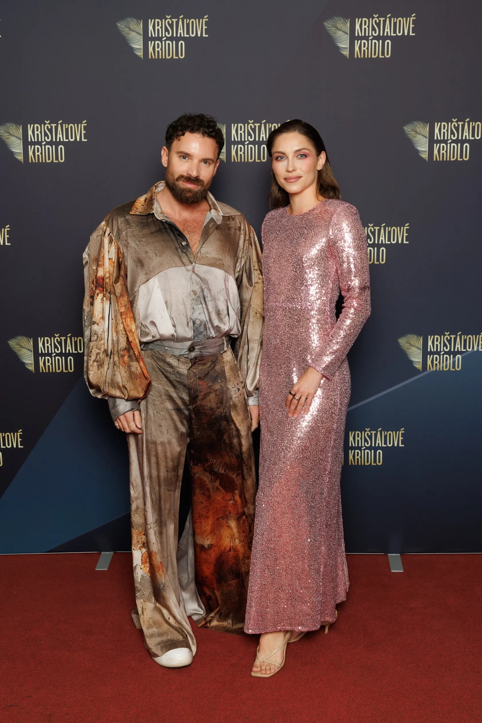 Milan Švingál išiel vedome proti prúdu. Jeho outfit narušil očakávania, no urobil to spôsobom, ktorý pôsobil premyslene a esteticky. Vedľa neho Barbora Bakoš zvolila úplne opačný prístup – lesk, jemnosť a ružový minimalizmus. Aj napriek rozdielnosti ich spojil jeden večer, ktorý ukázal, že kontrasty môžu fungovať.