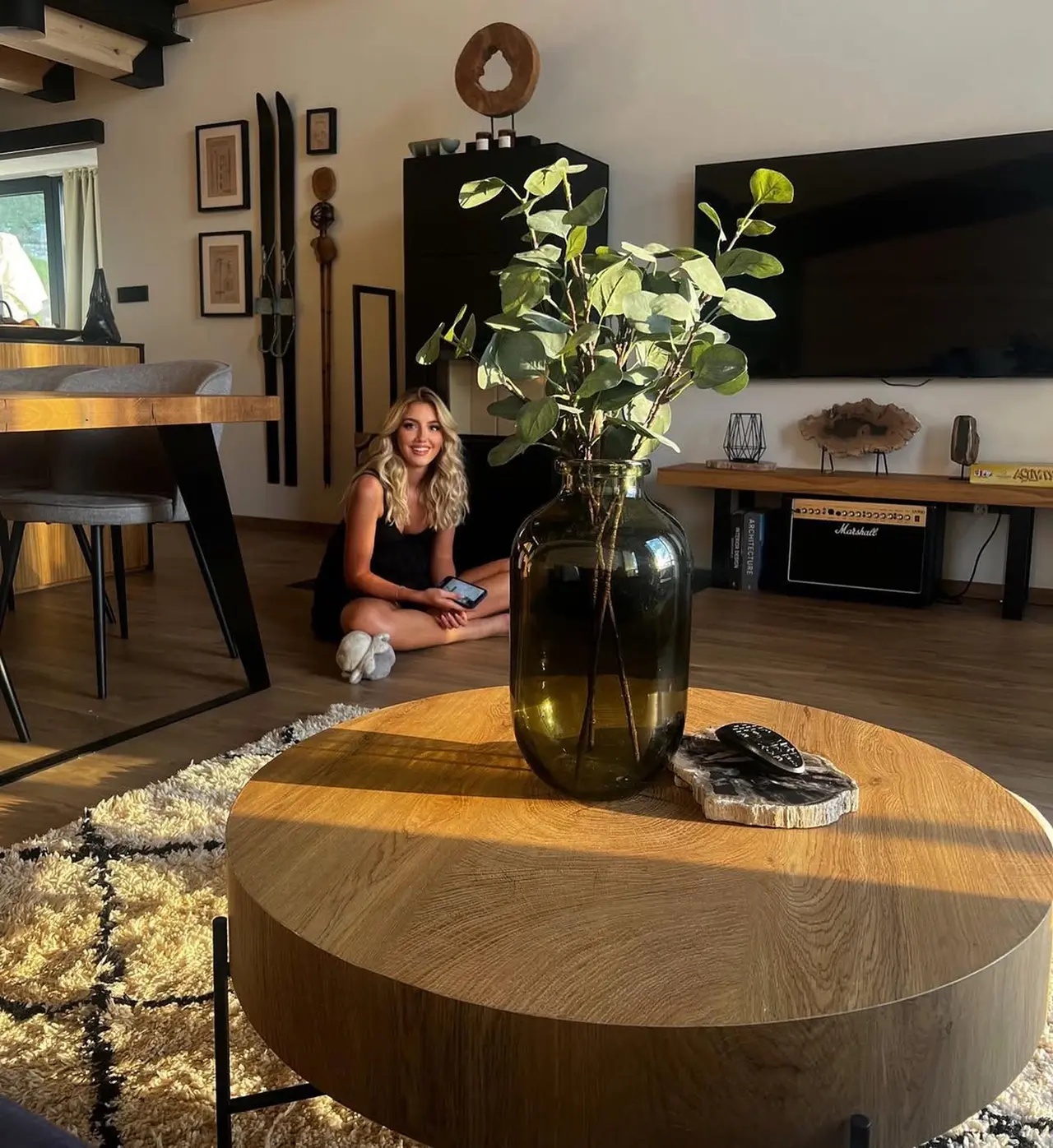 Celý priestor nepôsobí ako výstavný katalóg. Skôr ako miesto, kde sa skutočne žije. Fotografie na stenách, osobné predmety a jemné dekorácie naznačujú, že ide o domov, nie o pódiovú kulisu.