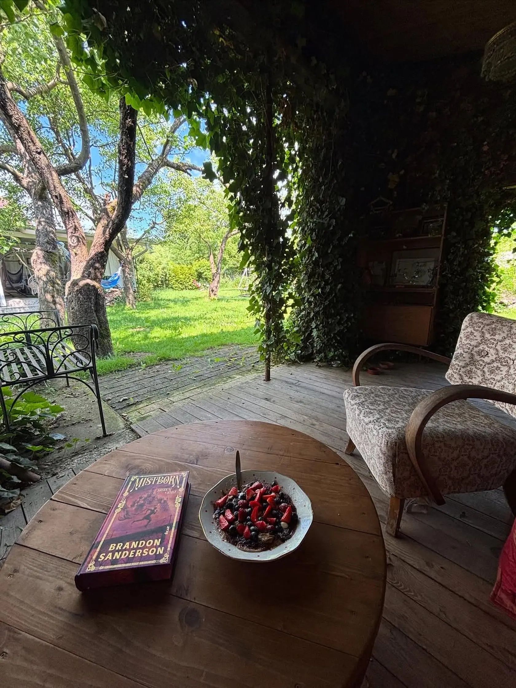 Nechýba ani kryté sedenie porastené brečtanom, ktoré pôsobí tak, akoby tam stálo odjakživa. Je to miesto, kde sa zastaví čas. A práve tu je vidieť, že záhrada nie je len doplnok, ale plnohodnotná súčasť života.