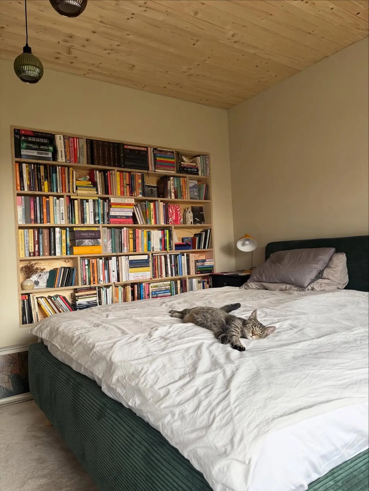 Jedna vec je však úplne neprehliadnuteľná — knihy. Sú doslova všade. V obývačke, na chodbe, v kuchyni aj v spálni. Práve tam sa skrýva detail, ktorý mnohých prekvapil. Veľká knižnica zapustená priamo do steny nepôsobí ako doplnok, ale ako prirodzená súčasť priestoru. Neuberá miesto, naopak — vytvára pocit pokoja a ticha.