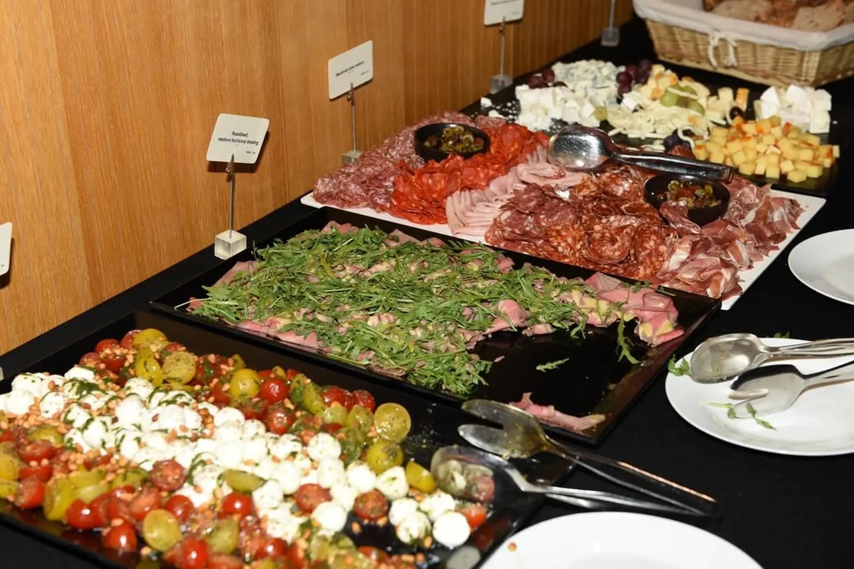 Jedným z najväčších lákadiel večera bolo jedlo. Bohato prestreté stoly ponúkali kombináciu chutí, ktoré uspokojili aj tých najnáročnejších. Studené misy s kvalitnými surovinami, čerstvou zeleninou, syrami a údeninami ponúkali svieže a ľahké kombinácie. Samozrejmosťou bol aj teplý bufet s osvedčenými jedlami, ktoré hostia poznajú a majú radi. Celkový dojem bol dokonalý – jedlo sa stalo neoddeliteľnou súčasťou oslavy, nie len doplnkom.