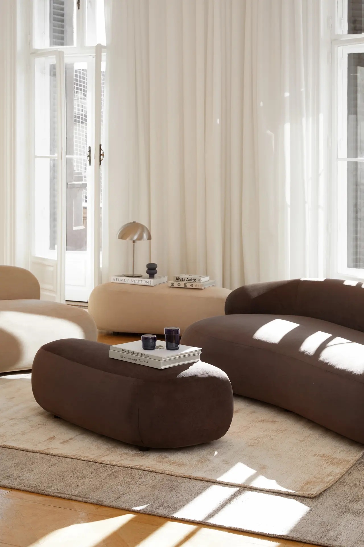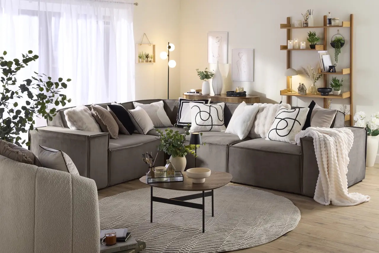 Obývačka, ktorá je srdcom domácnosti, je vybavená veľkou rozkladacou sedačkou v tvare „U“. Tá poskytuje dostatok priestoru na spoločné chvíle a pohodlný spánok. „Chceli sme, aby bola obývačka miestom, kde tráviť čas všetci spoločne,“ hovorí Erika.