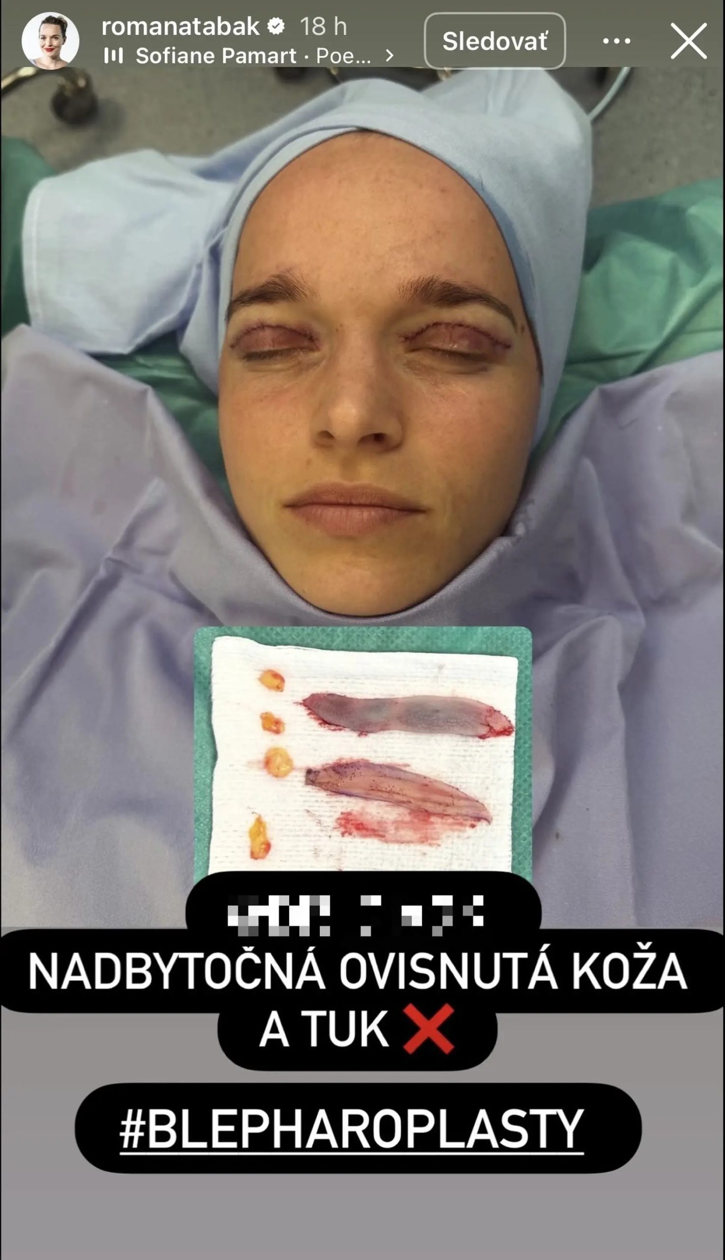 Tentoraz však nešlo o cudzie rozhodnutia, ale o jej vlastné telo. Tabaková sa rozhodla pre estetický zákrok, konkrétne blefaroplastiku – operáciu očných viečok, pri ktorej sa odstraňuje prebytočná koža, tuk alebo sval. Ide o bežný zákrok, ktorý ľudia podstupujú z estetických aj zdravotných dôvodov.