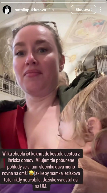 A práve to sa stalo aj tentoraz. Obyčajná nedeľa, návrat z ihriska a spontánne rozhodnutie vojsť do kostola. Pokojné prostredie, ticho, lavice… a dieťa, ktoré si jednoducho vypýtalo svoje. Natália sedela s dcérkou a keď prišiel moment, neváhala. Bez zbytočných gest spravila to, čo považuje za úplne normálne.