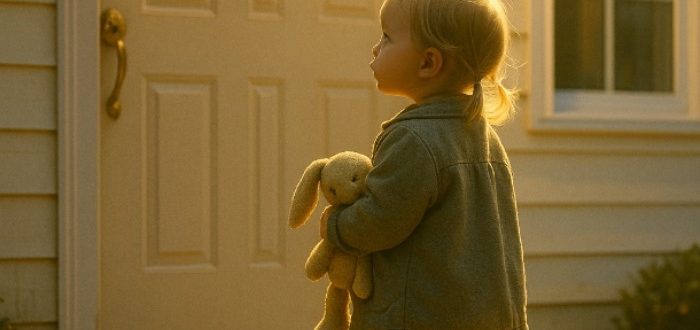 Nikdy som si nemyslela, že obyčajné dvere môžu tak desiť. Ale všetko sa začalo v okamihu, keď som ju prvýkrát uvidela — malé dievčatko v sivom kabátiku, s