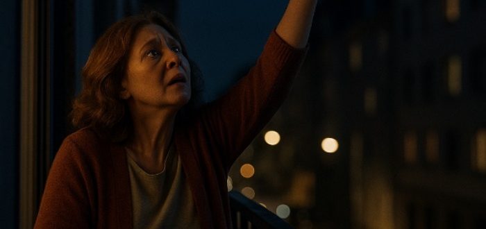 Noc bola tichá. Oľga sa už chystala spať, keď zrazu začula zvláštny zvuk — akoby sa niekto škriabal alebo klopal po kovovom zábradlí. Najprv si myslela, že to